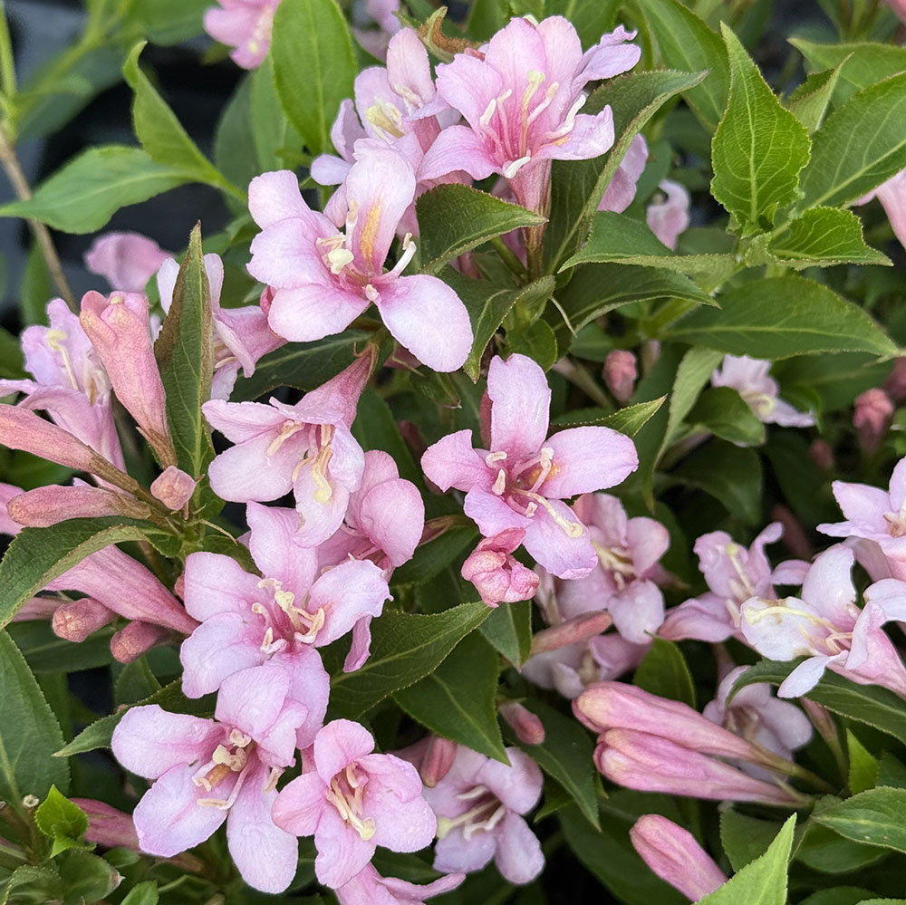 Weigela florida 'Pink Poppet' (vajgela kvetnatá) je drobný okrasný ker kvitnúci od jari do leta s maximálnou výškou 50-60 cm. Bledoružové trúbkovité kvety jasne žiaria na lesklých zelených listoch. Práve hustý a kompaktný habitus vajgelu predurčuje do črepníkových výsadieb a mobilných nádob, je vhodná do nízkych živých plotov.