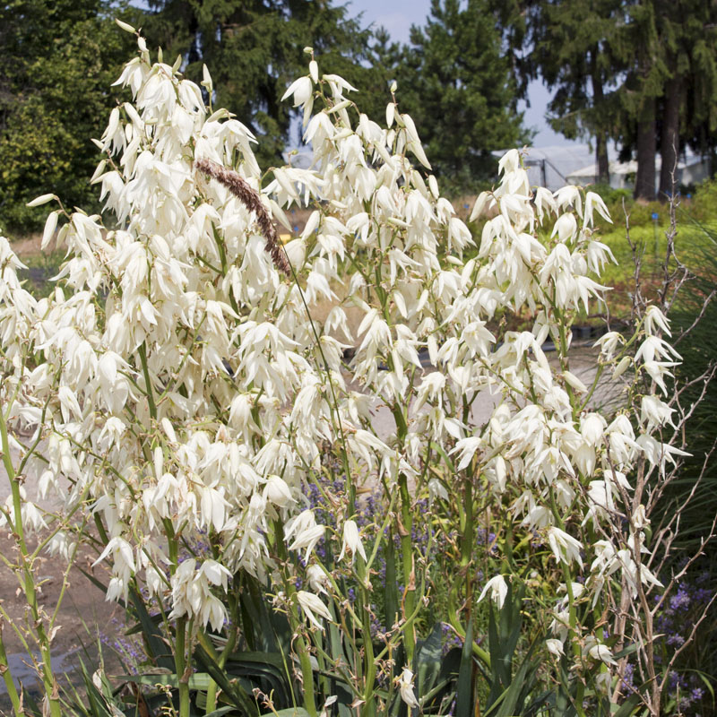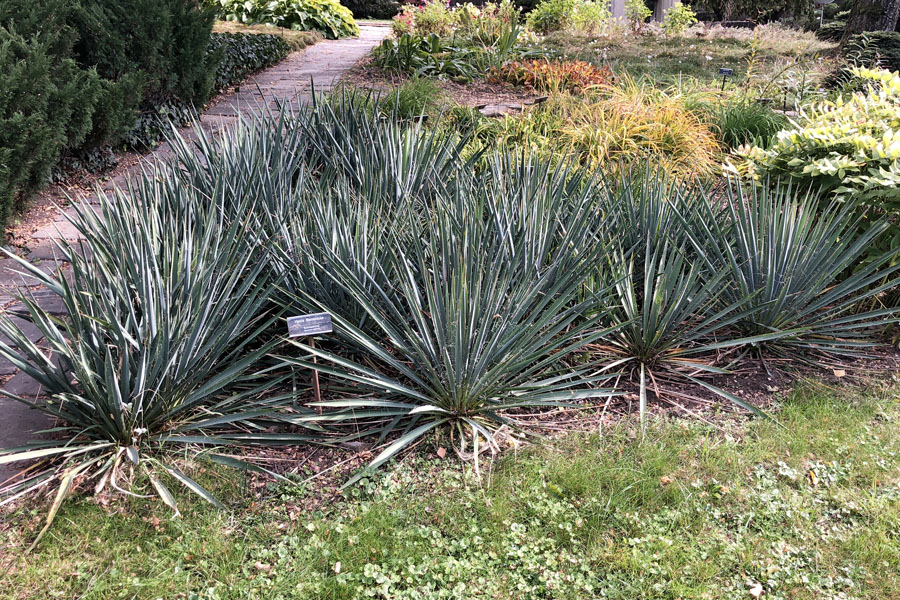 Yucca filamentosa - juka vláknitá je trvalka pôvodom južných oblastí Severnej Ameriky. V prírode rastie vo vyšších polohách na suchých a slnečných lokalitách, prípadne okrajoch borovicových lesov. Vytvára mohutné ružice, tvorené tuhými, sivozelenými vláknitými listami.